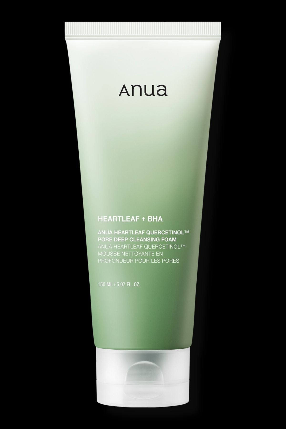 Espuma limpiadora profunda de poros con quercetinol Anua Heartleaf enriquecida con ingredientes calmantes y BHA que limpian la piel y minimizan la apariencia de los poros.