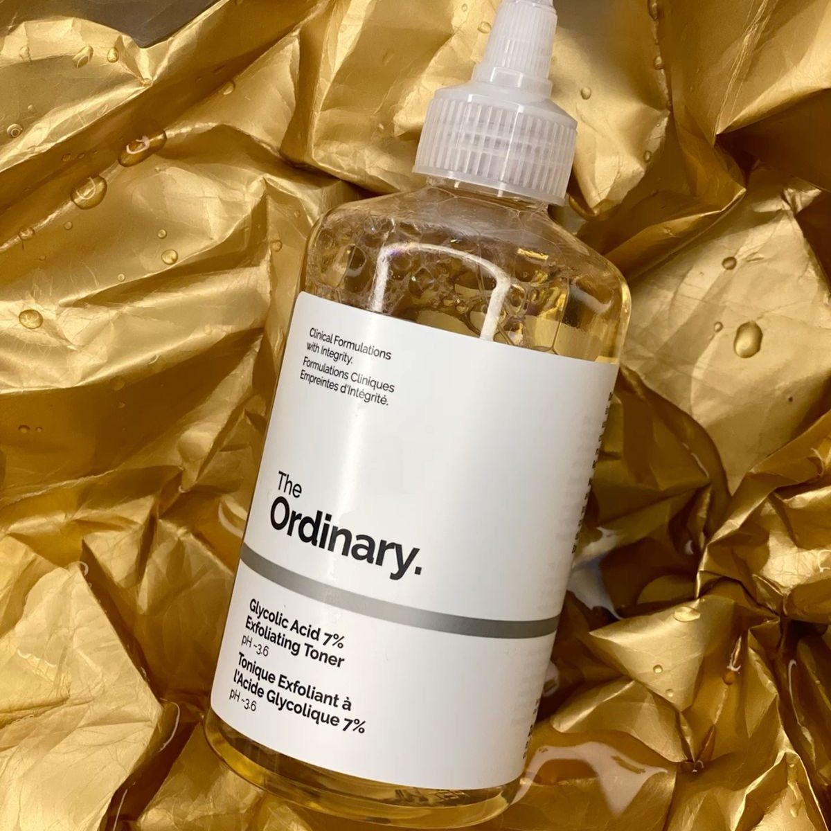 El Tónico Exfoliante con Ácido Glicólico al 7% de The Ordinary es un tónico a base de agua que utiliza ácido glicólico al 7% para exfoliar la piel. Ayuda a eliminar las células muertas y a mejorar su textura. También contiene ingredientes como aloe vera y derivado de la pimienta de Tasmania para calmar la piel.
